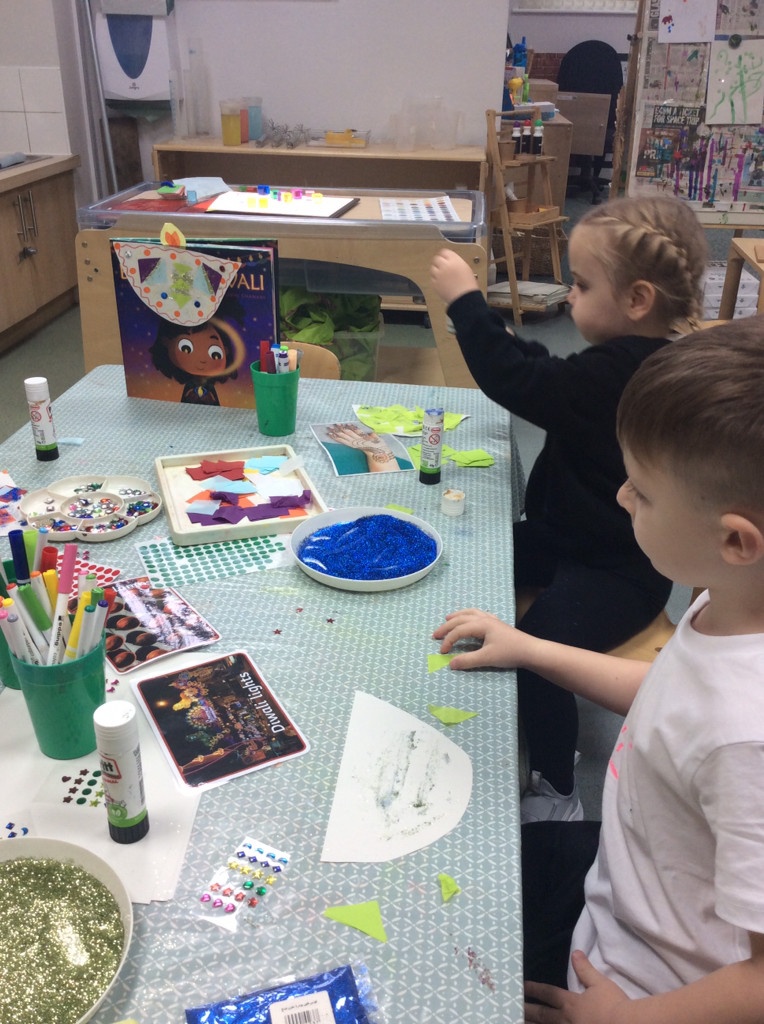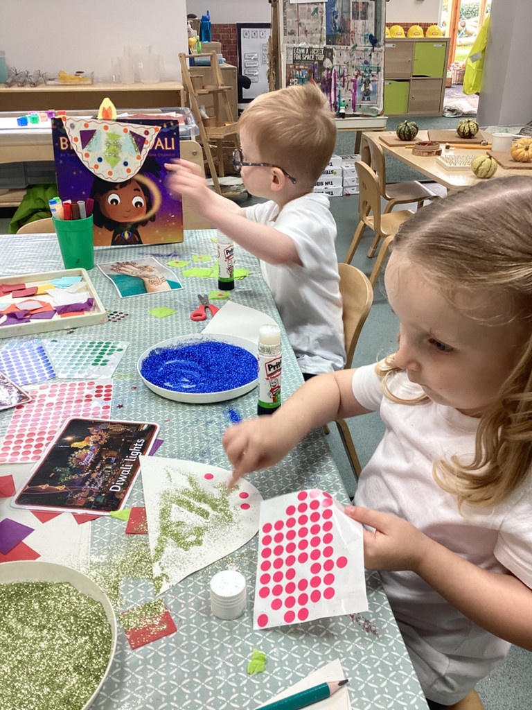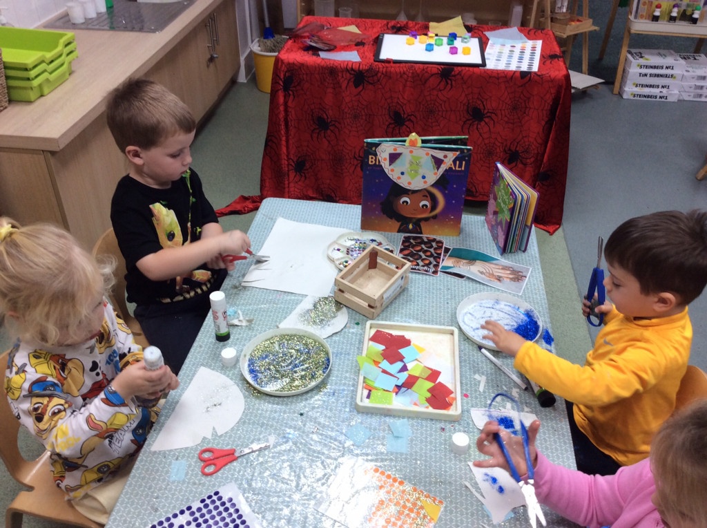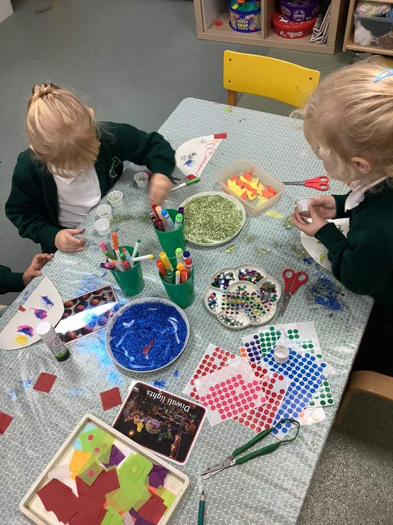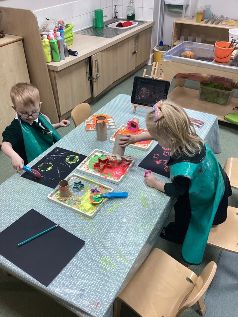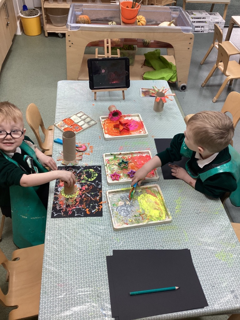 We all together spoke about what Bonfire Night looks like to us, creating our own firework pictures whilst watching a firework display on the Ipad for our art, as well as talking about how to keep safe around fire, if we went to any events in the local community. To enhance this learning we invited the local Fiire brigade to talk to the children about how to keep safe, and what to do if they come into danger. We also spoke about Diwali, and what traditions are typically carried out, and why. We even made our own Diya Lamps.