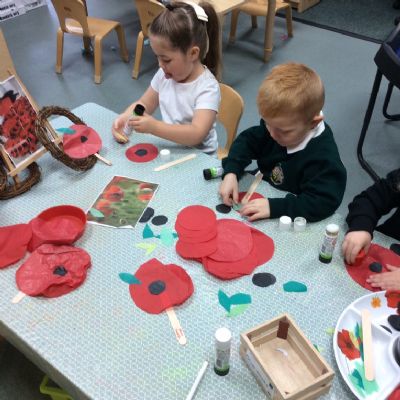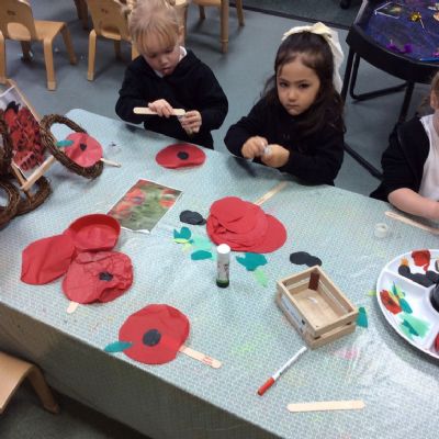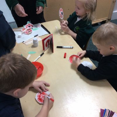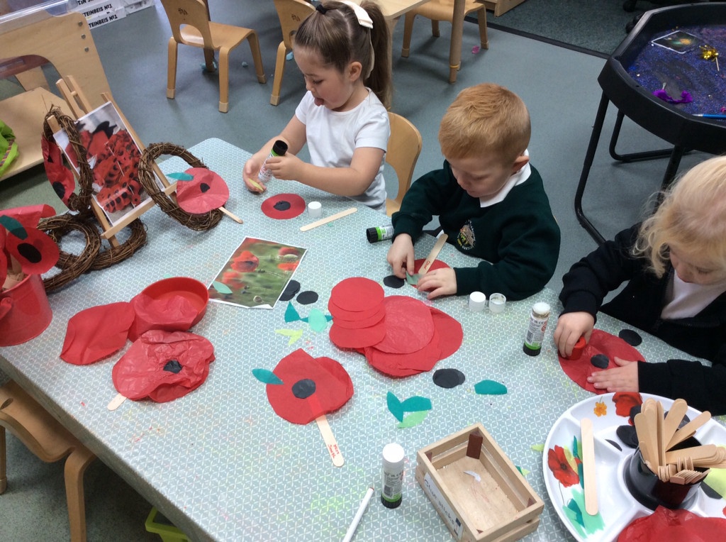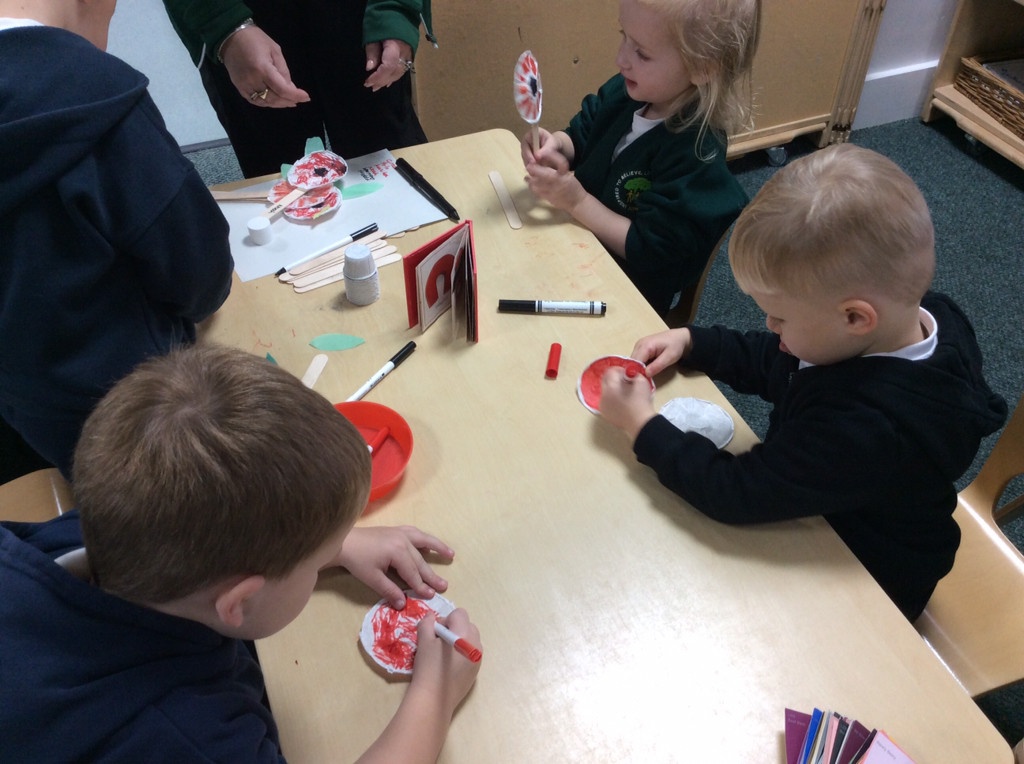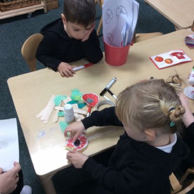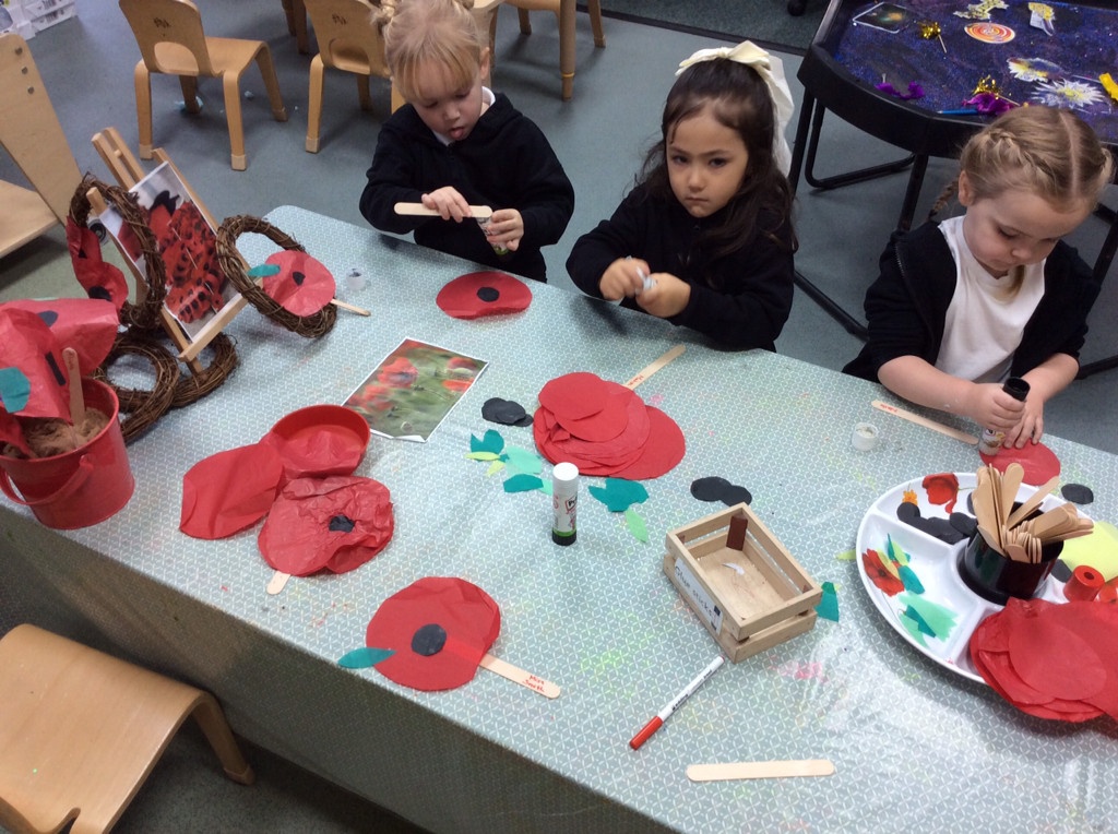 On Remembrance Day we spoke about why we have this day in place, and showed the children the lovely animation on Cbeebies. We then went on to make our own poppies and laid them in our garden.