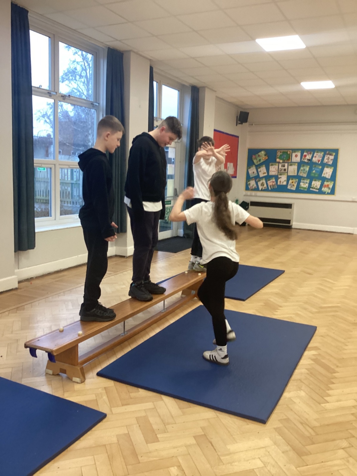 This week we have been creating sequences that include: walking like a gymnast, jumping, balancing and mounting and dismounting onto benches.