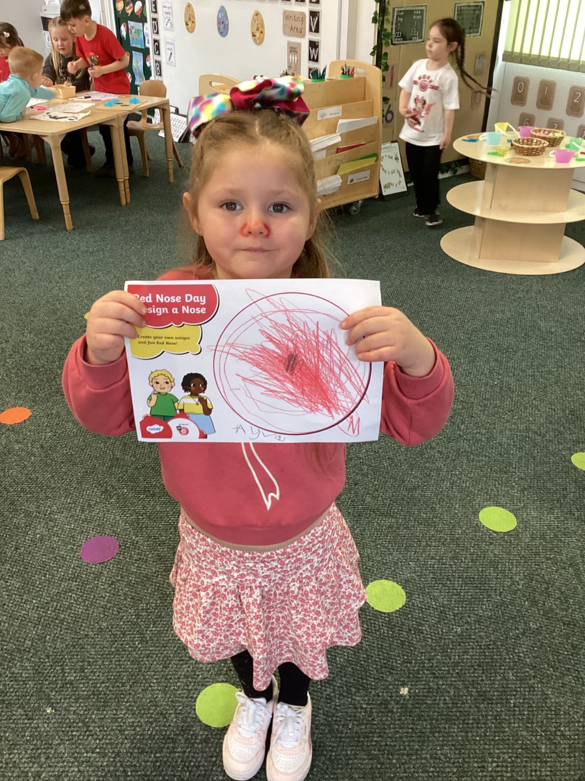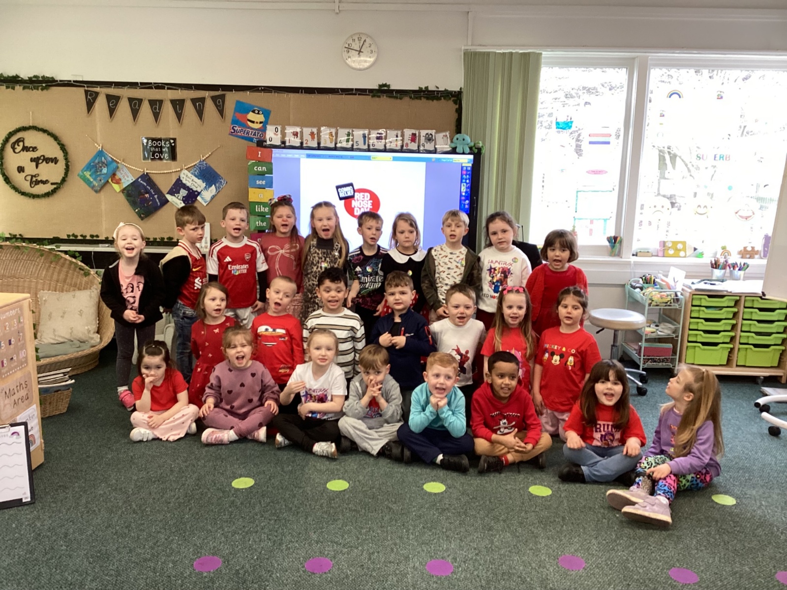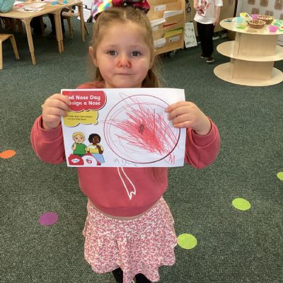 We enjoyed coming into school today in red or our own clothes to raise money for Red Nose Day. This year the money raised will support those in need during the current living crisis. We were creative, designing our own red noses and silly faces.