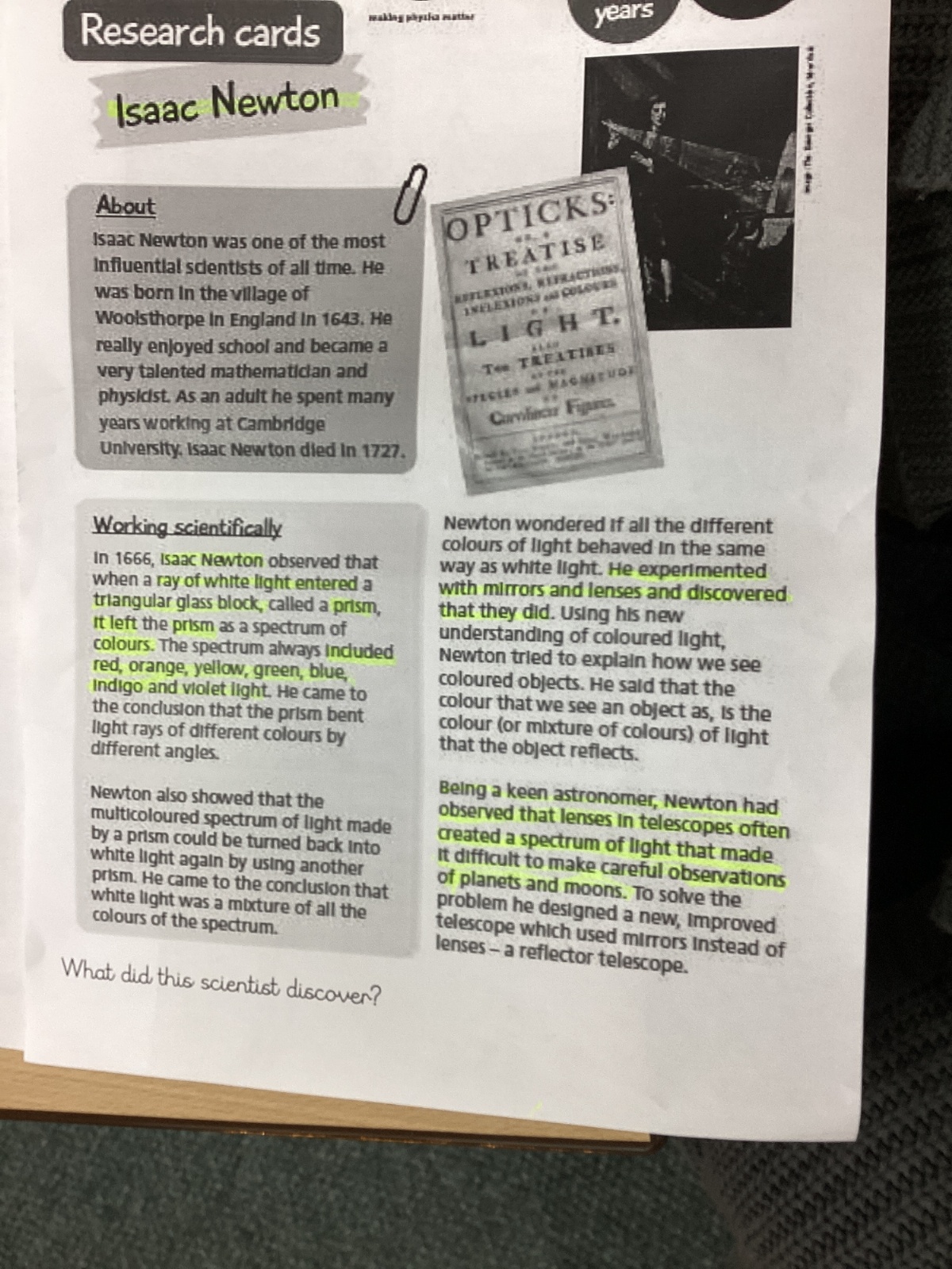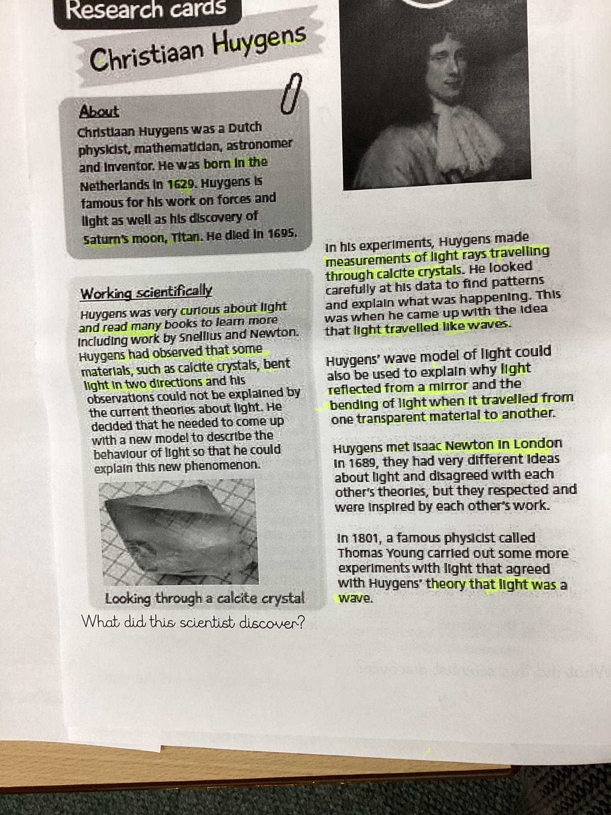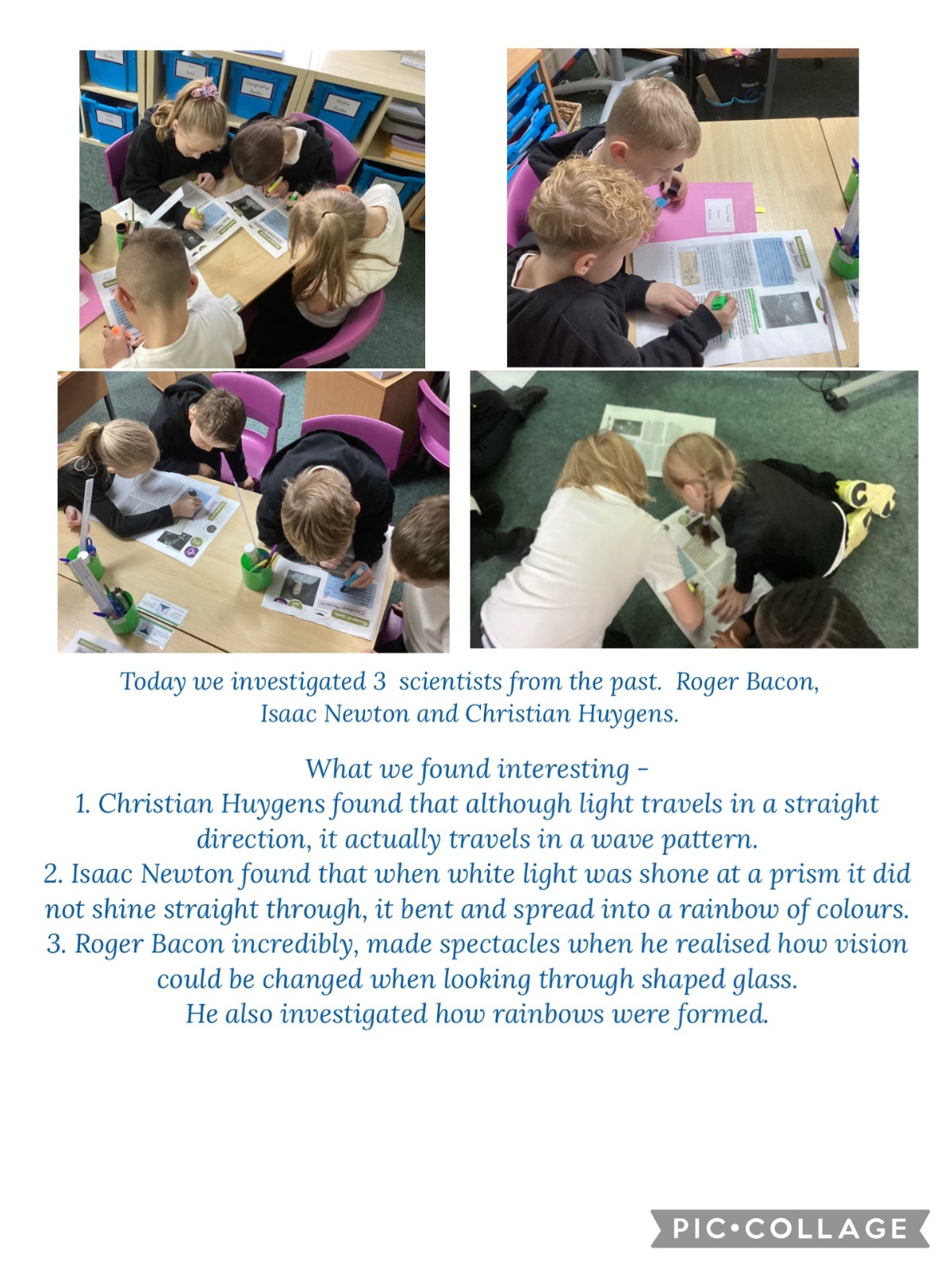 For Cultural Capital, we researched three scientists and how they investigated light.