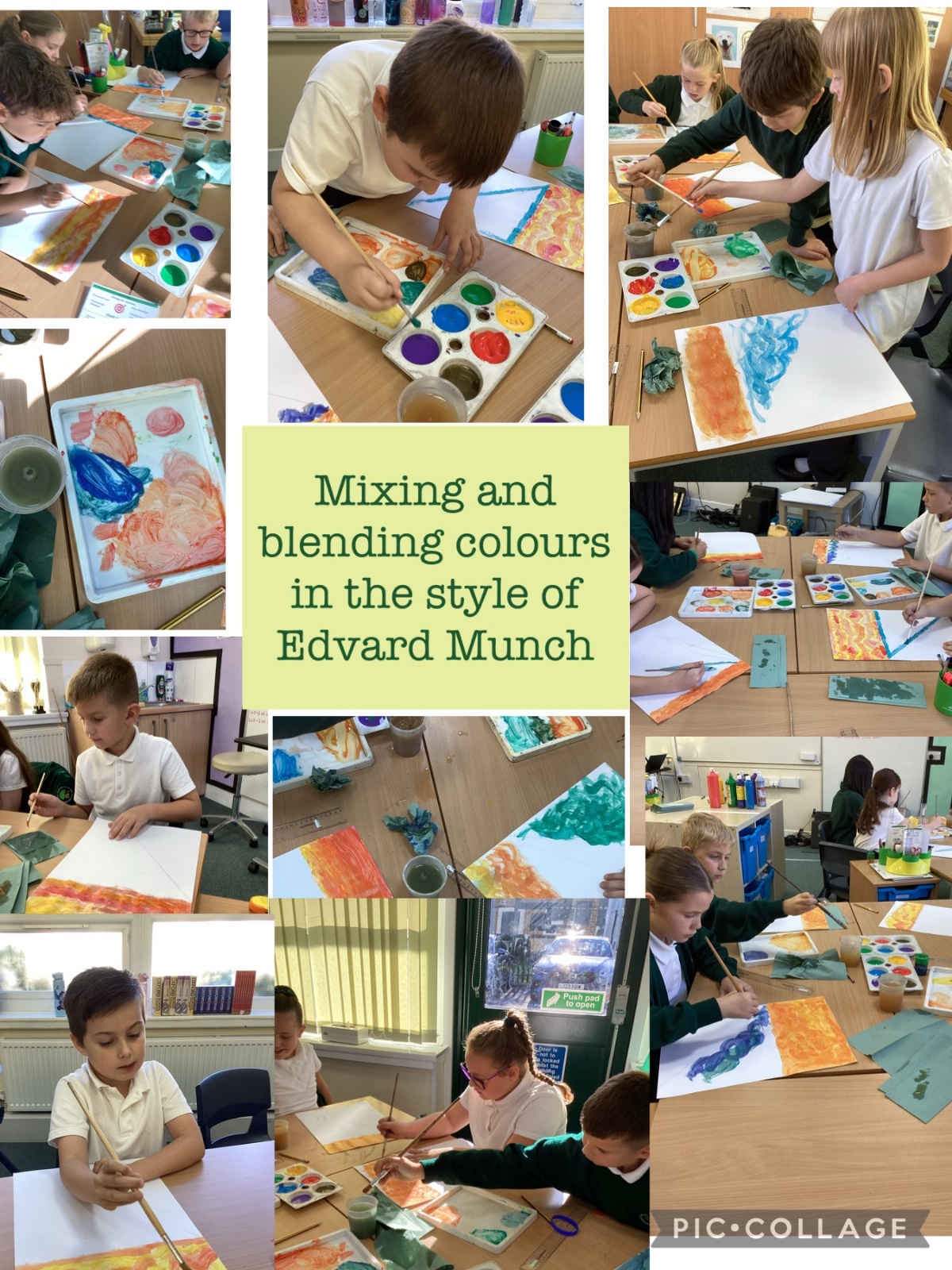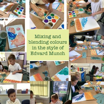 Today, we replicated the work of our featured artist, Edvard Munch. We blended colours and used brush strokes to recreate the style of his most famous work, The Scream.