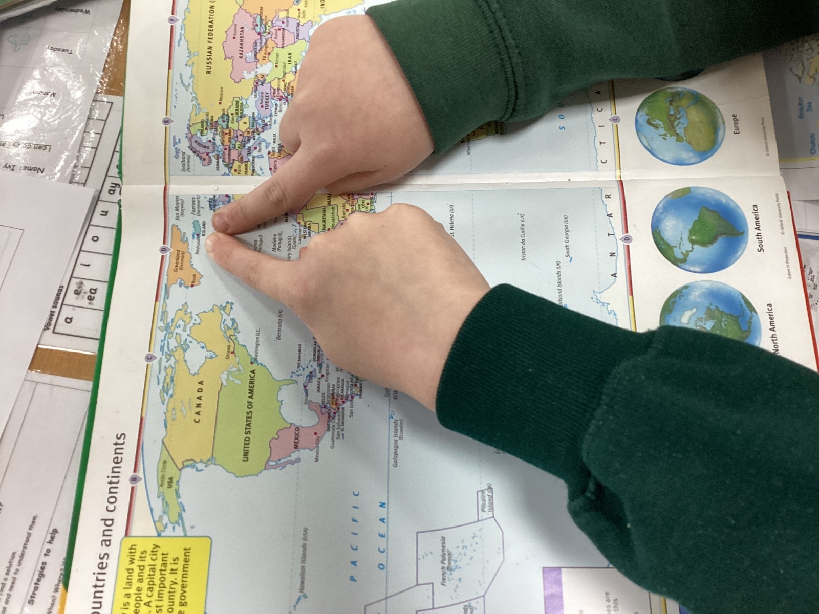 We were learning about Europe and the oceans that surround it by using an atlas. We also identified the most northerly capital in Europe.