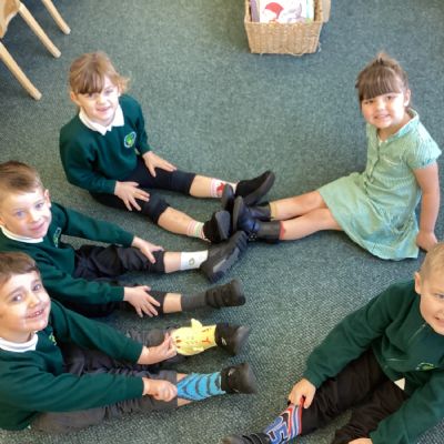 We came to school wearing our odd socks for Anti-Bullying Week to show that we are all unique. We talked about being kind to everyone and using our power for good. We enjoyed matching up the socks and designing our own odd socks.