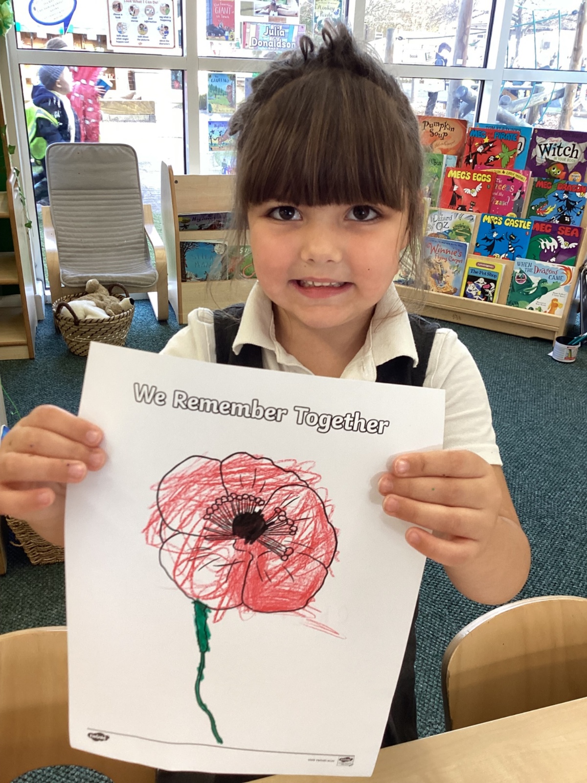 We wore our poppies to remember the brave soldiers who fought in the wars. We enjoyed creating our own poppies in class.
