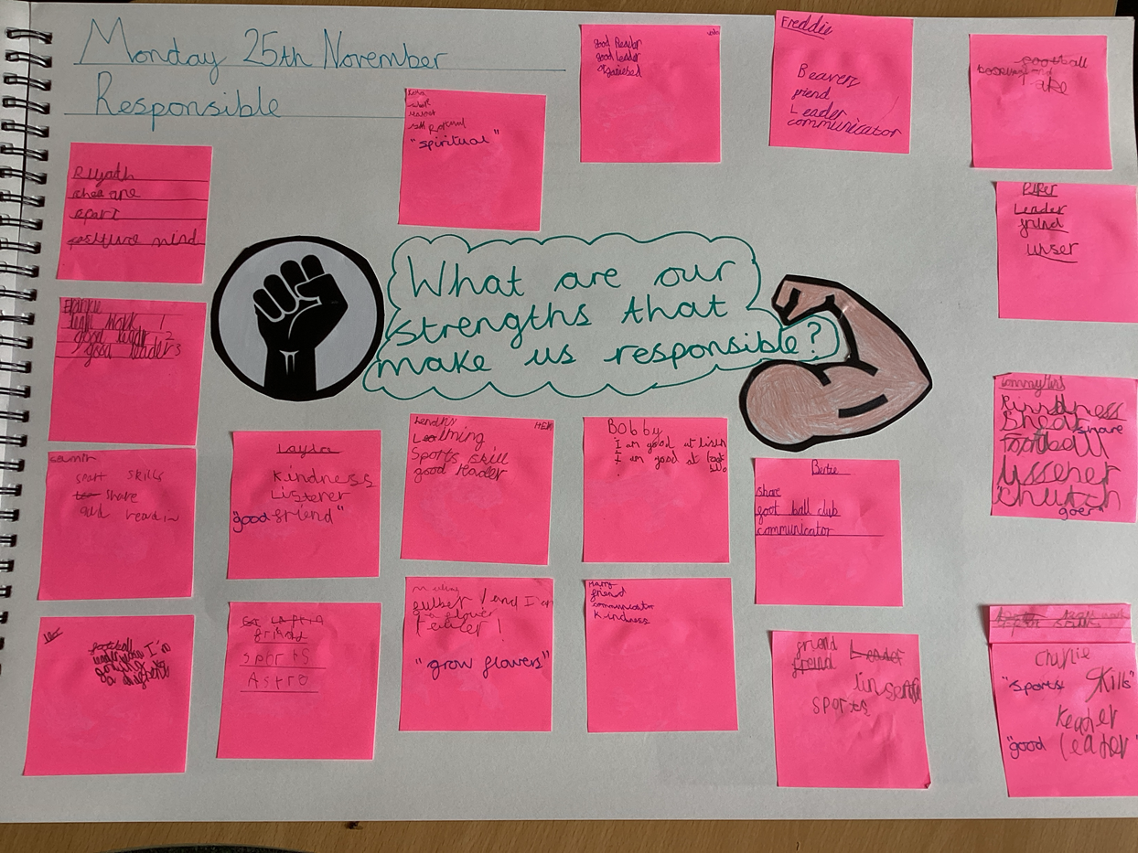 KS2: We like P.D lessons because we do lots of fun things and have debates. They are different to normal lessons and we like adding to the big book. We all get a turn to put things into them.